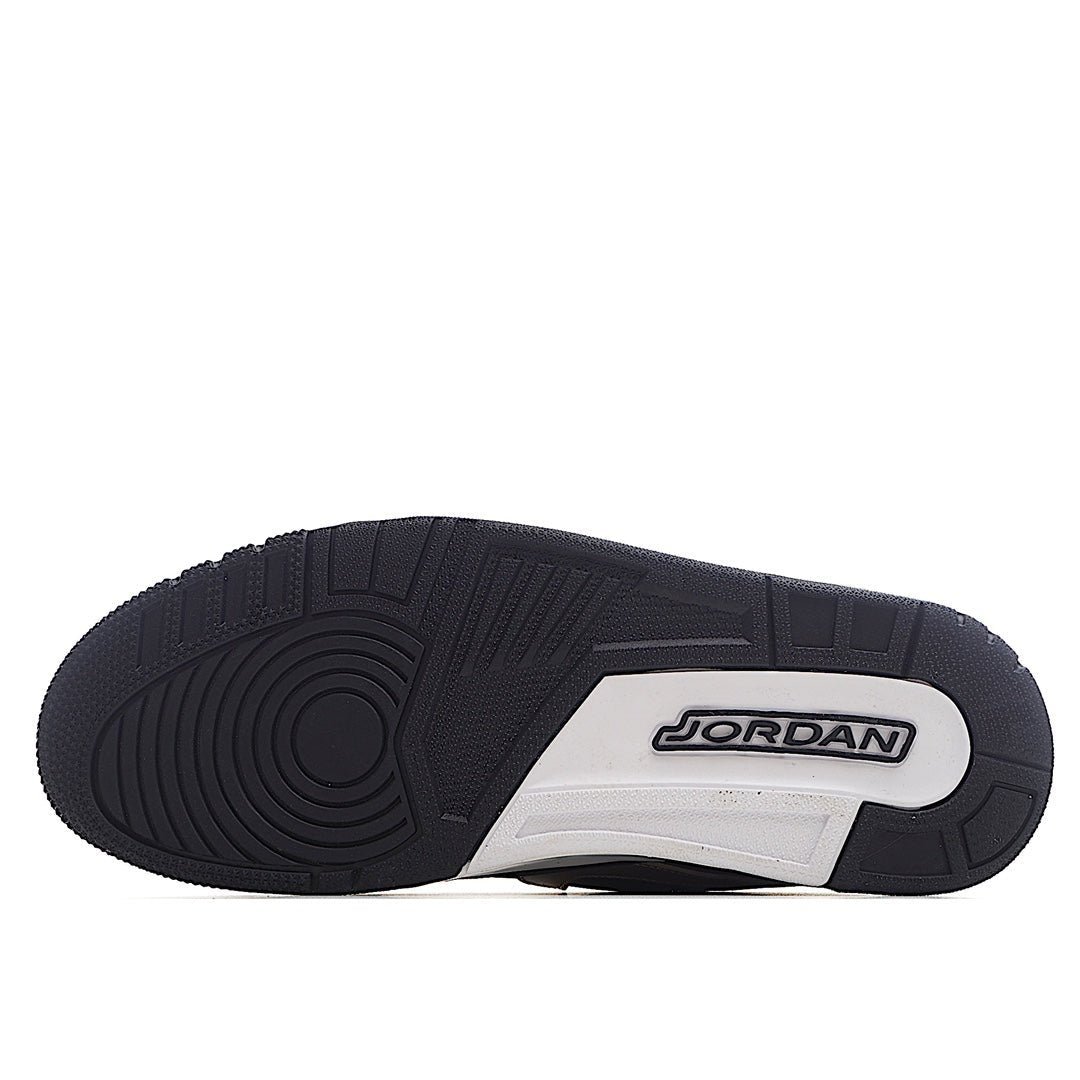The midsole is a crisp white, offering a sharp contrast to the black upper and enhancing the overall clean look of the shoe. The translucent black outsole not only complements the design but also ensures excellent traction and durability.