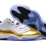 The “DMP” features a luxurious combination of black and metallic gold, exuding elegance and power. The upper is crafted from sleek black patent leather, offering a glossy and premium look that captures the iconic style of the Air Jordan 11. The mesh upper provides breathability and comfort, while the black and gold color scheme creates a striking contrast that adds a touch of sophistication.