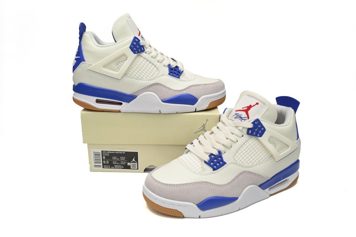 The Air Jordan 4 Sapphire is a striking sneaker that seamlessly blends classic design with a bold, contemporary colorway. This edition of the iconic Air Jordan 4 showcases a captivating Sapphire Blue hue, making it a standout choice for sneaker enthusiasts and fashion-forward individuals.