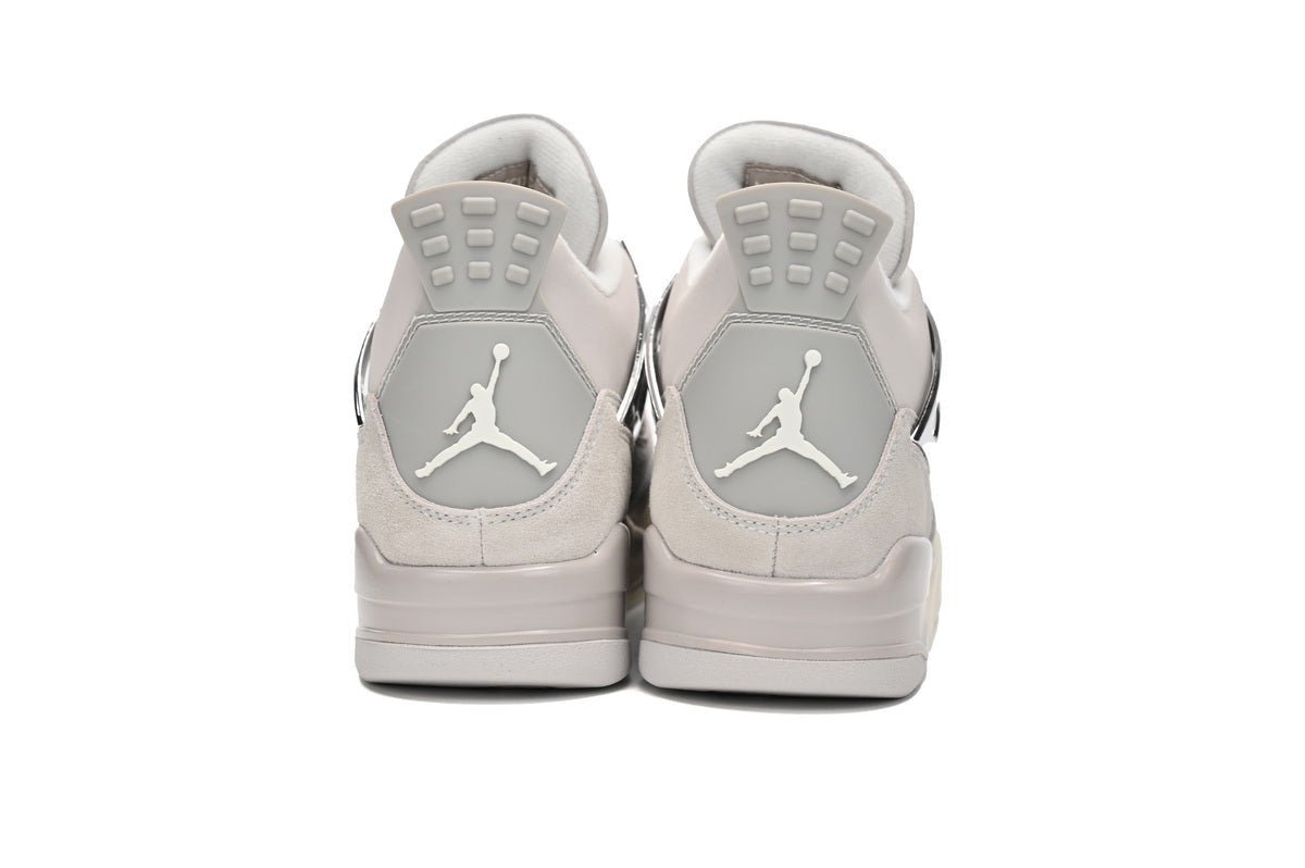 Embrace the essence of sports history and urban fashion with the Air Jordan 4 WMNS “Frozen Moments.” This exclusive women’s iteration pays homage to iconic moments in basketball history, capturing the essence of victory and celebration. The upper features premium white leather, symbolizing purity and timelessness, with contrasting hits of Metallic Silver on the eyestays, wings, and heel tabs, adding a touch of elegance and luxury.