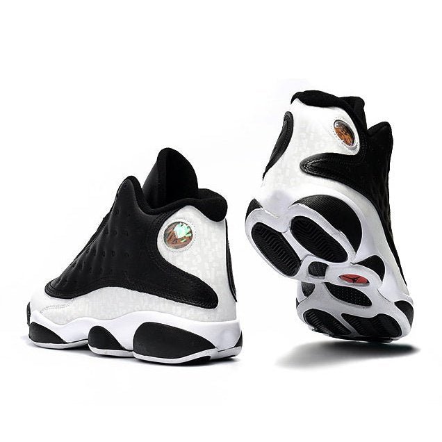 The Jordan 13 Retro x Reverse He Got Game features a premium leather and mesh upper in a combination of white and black. The reversed color blocking creates a new interpretation of the classic “He Got Game” design, offering a fresh and unique aesthetic. The black and white hues come together to create a bold and captivating look.