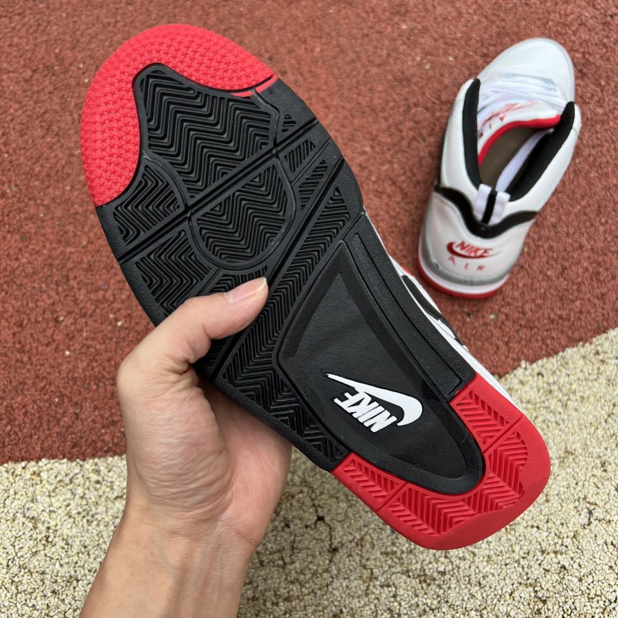 The upper is crafted from pristine white leather, offering a clean and versatile base that is both striking and understated. The grey suede overlays add a layer of texture and contrast, enhancing the shoe??s overall look. The standout feature of this model is the vibrant red accents, which are prominently displayed on the Jumpman logo, the outsole, and the inner lining, providing a dynamic pop of color that energizes the classic design.
