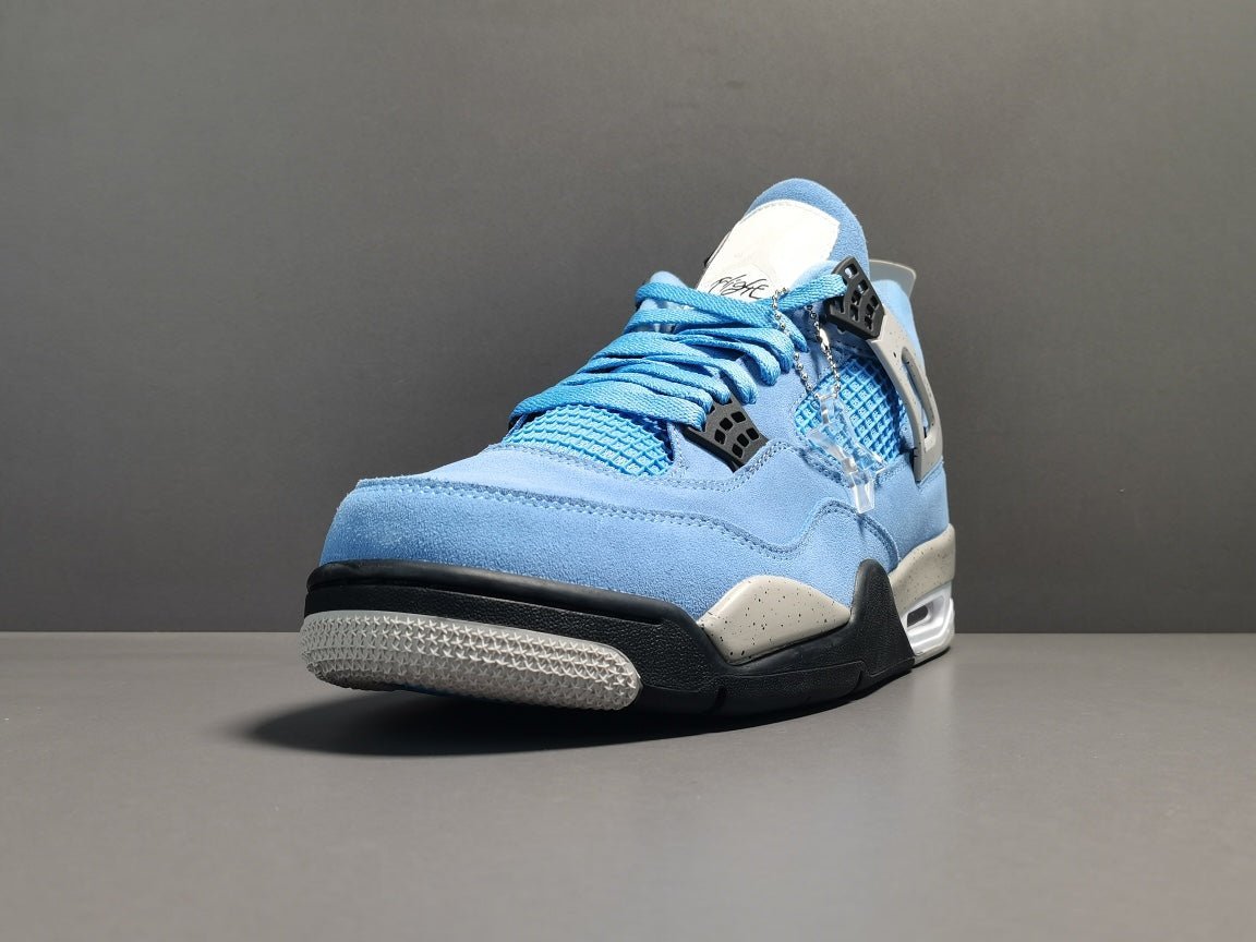 The Jordan 4 x University Blue is a true collector’s item, with its limited edition status and the iconic Jordan branding on the heel and tongue. This sneaker embodies the heritage and legacy of Air Jordan, making it highly sought after by sneaker enthusiasts and fans alike.